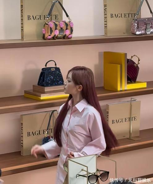 不过你还是能看出,宋雨琦也挺想用心拍出自然又有那种氛围的照片。在墙边,那些名牌包包前晃来晃去的,估计是想拍点有感觉的照片,不过这次的粉长直看上去确实挺顺滑的。