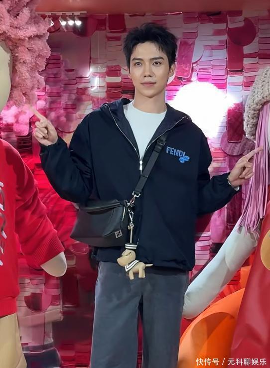 这次在活动上,他完全没像平时那样给人古风小男子的感觉了,穿了件深蓝色的卫衣,再搭配灰色牛仔裤。还配了个斜挎包,一头短发也很配,整体看起来就像个潮男似的出场。