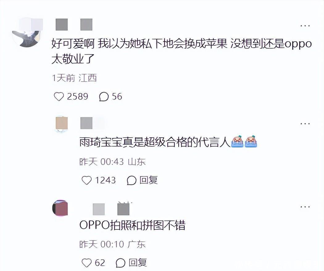 还有网友发现宋雨琦用的还是oppo手机,真是得佩服她那份敬业劲儿。